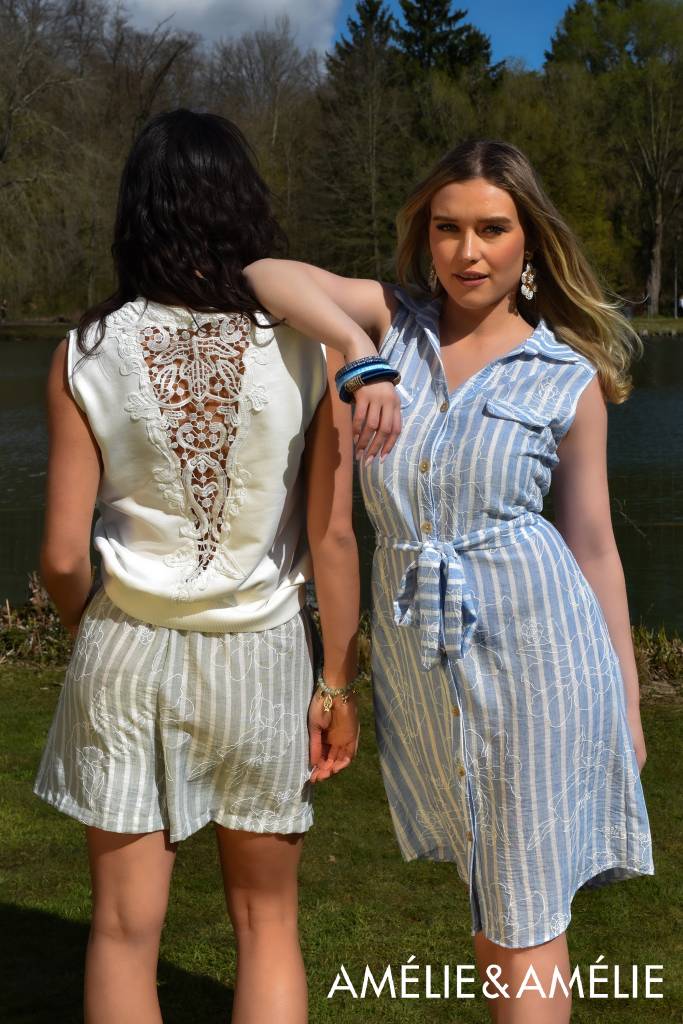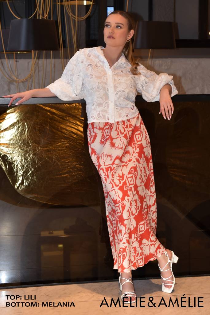 De prachtige Sasha en Corina staan voor warmte, kleur en vrijheid bij Amélie & Amélie. Krachtige tinten zoals koraal en oranje, maar ook zachte pastels zoals mintgroen, botergeel en lichtblauw. Luchtige stoffen en vloeiende silhouetten zorgen voor een moeiteloze, zomerse elegantie.